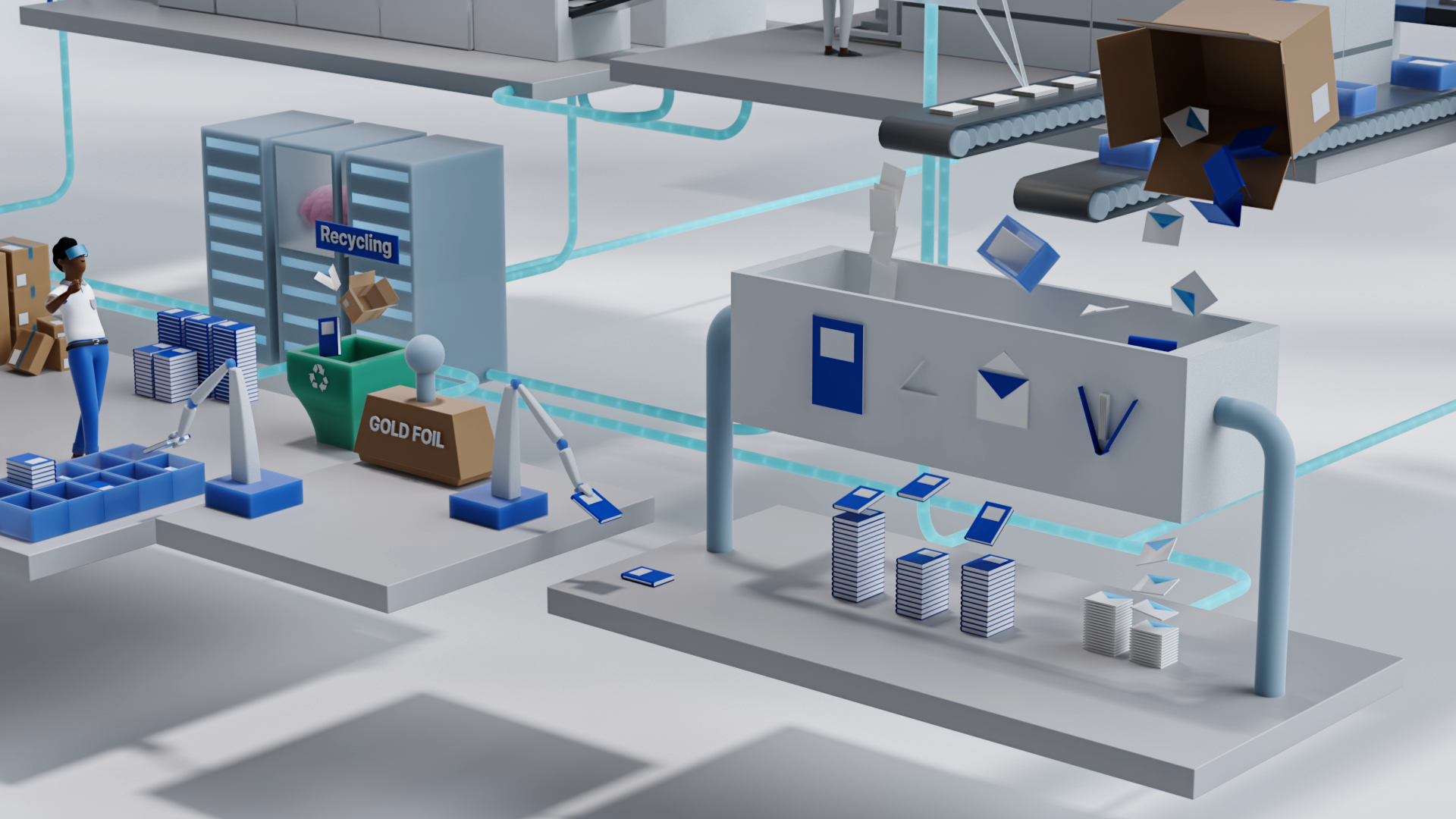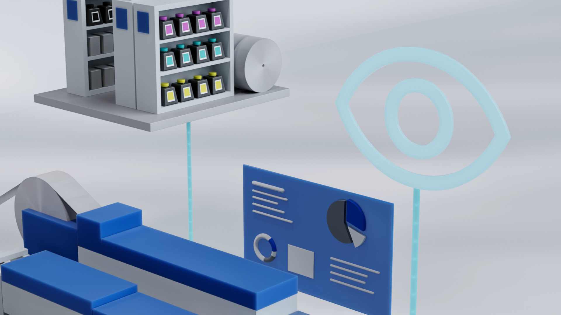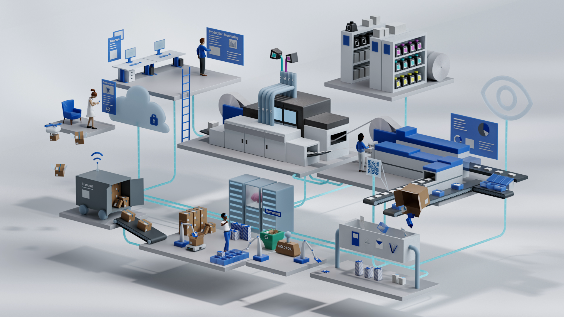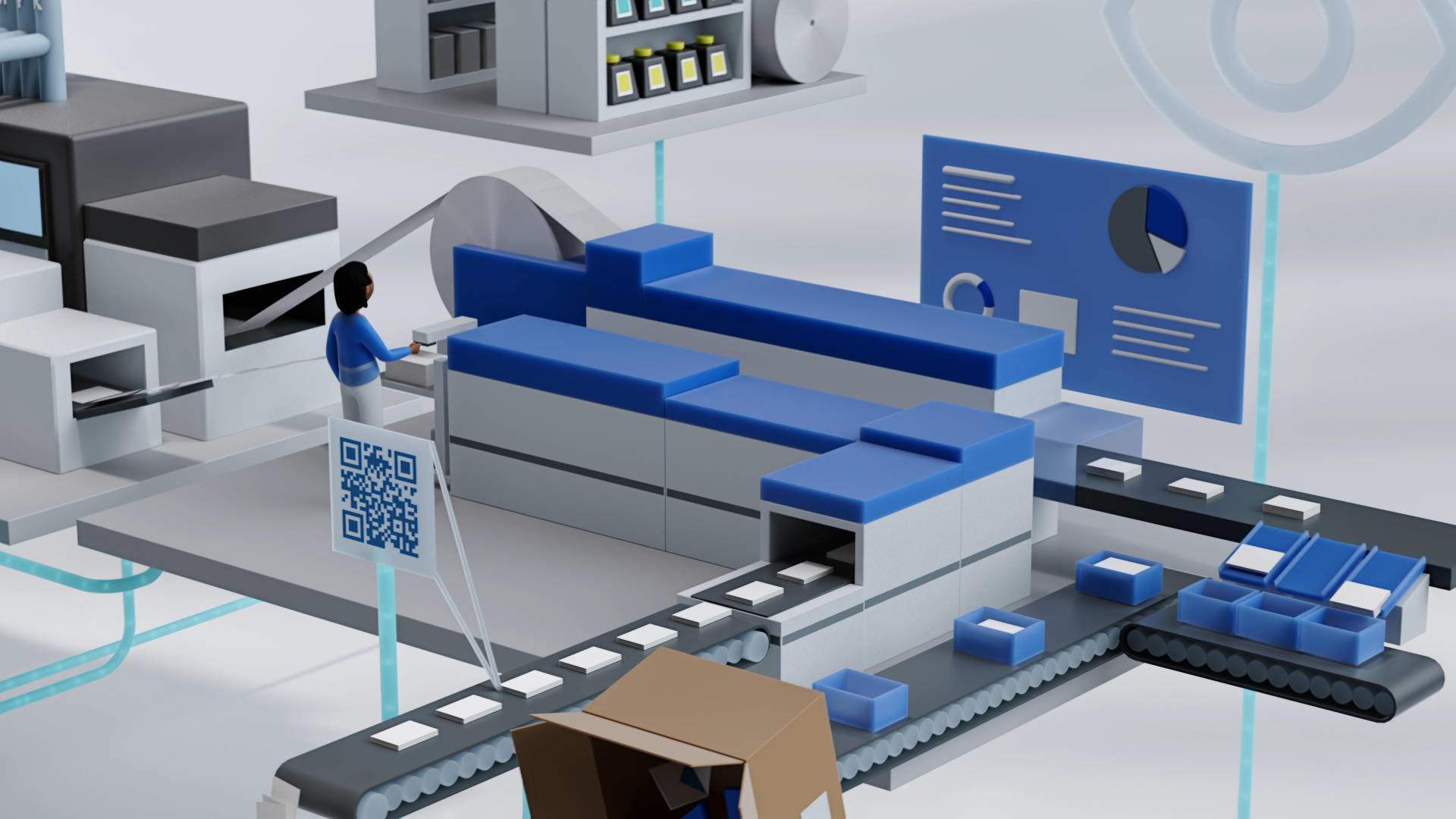 Vom Moment der Bestellung eines Endkunden bis zur Auslieferung werden Prüfung, Überwachung und Inspektion der gesamten Produktionslinie zentral gesteuert und analysiert. Zuerst als gelayerte Infografik gedacht, entstand zusätzlich ein OneShot-Spot.